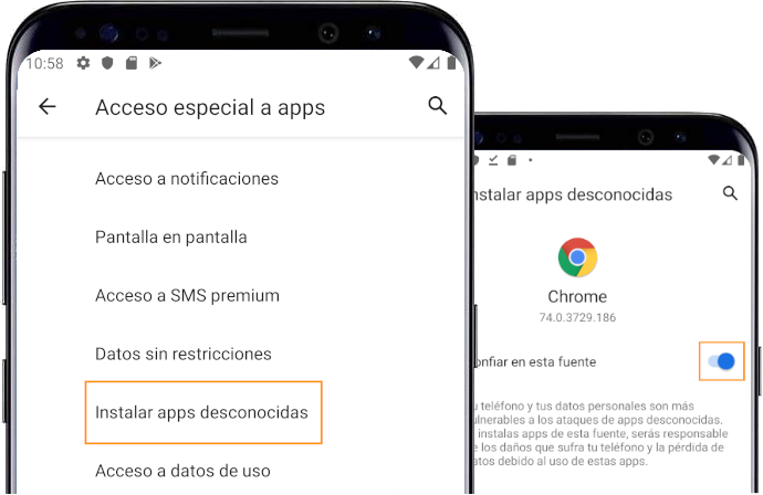 Activa 'Fuentes desconocidas' en tu dispositivo. Esta opción se encuentra en Ajustes > Apps y notificaciones > Acceso especial a apps > Instalar apps desconocidas. Seleccione el navegador donde has descargado la aplicación, y marque la opción 'Confiar en esta fuente.