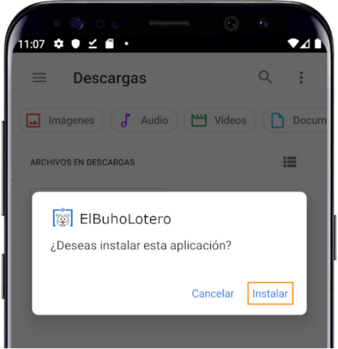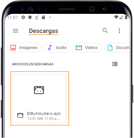 Diríjase a la carpeta 'Descargas', la encontrará en el menú principal > Archivos. Abra e instale el archivo .apk y empieza a disfrutar de la mejor aplicación de loterías.